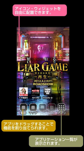 1:映画「ライアーゲーム-再生-」きせかえアプリをAndroidMarketからダウンロードしてください。